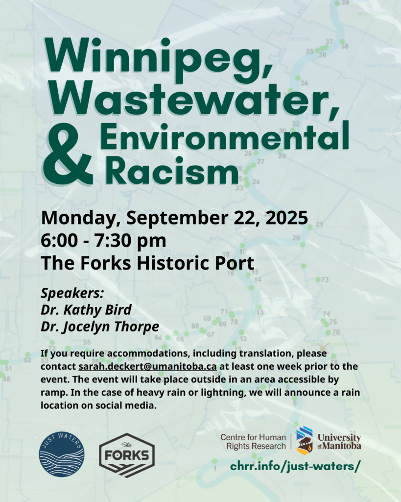 Join us on Monday, September 22 on the Red and Assiniboine Rivers at The Forks Historic Port. Just Waters and the Centre for Human Rights Research are collaborating to host this event, in partnership with The Forks. Funding is provided by the University of Manitoba’s IGNITE program, with in-kind contributions from The Forks.