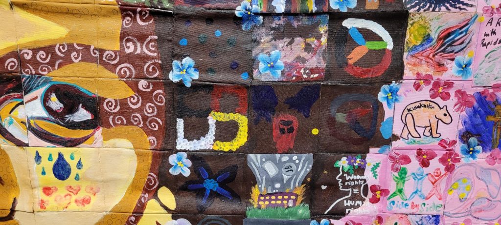 The mural is now displayed in the office of the Department of Women’s and Gender Studies at the University of Manitoba.